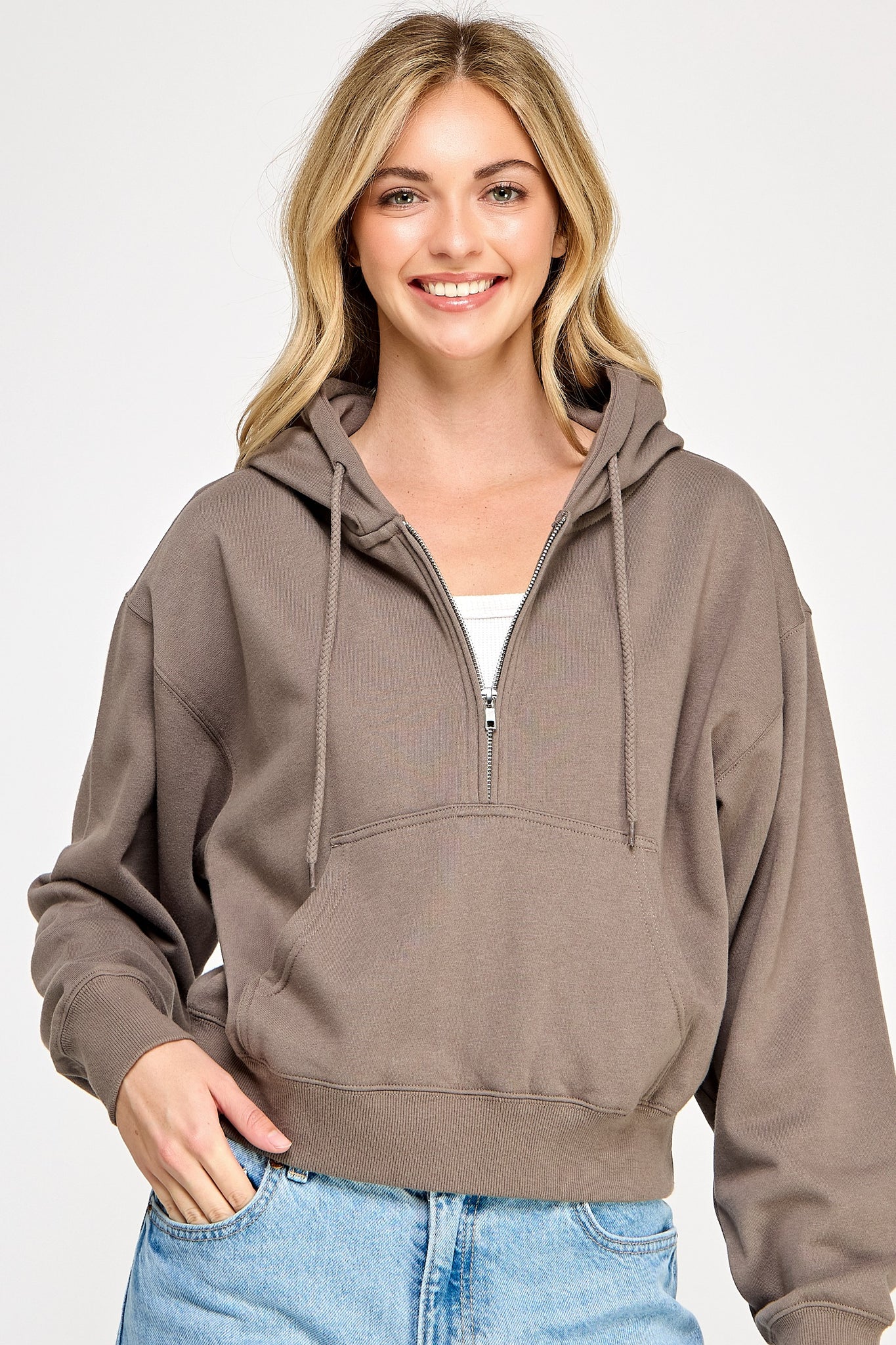 Loving How I Am Living Basic Fleece Half Zip Hoodie in Fossil