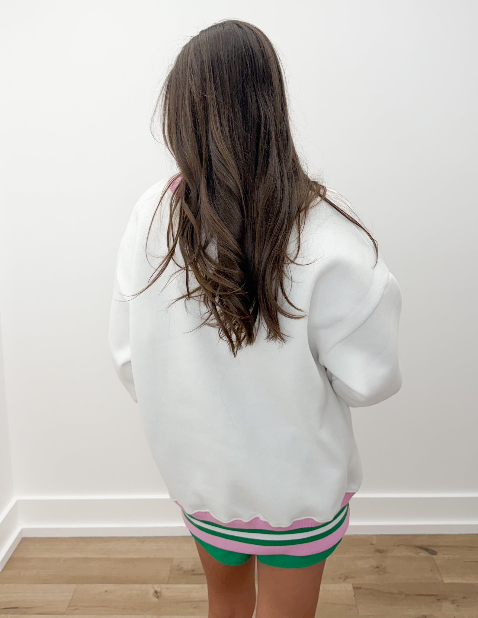 Lulu Mac Stitch Sweatshirt in White/Pink