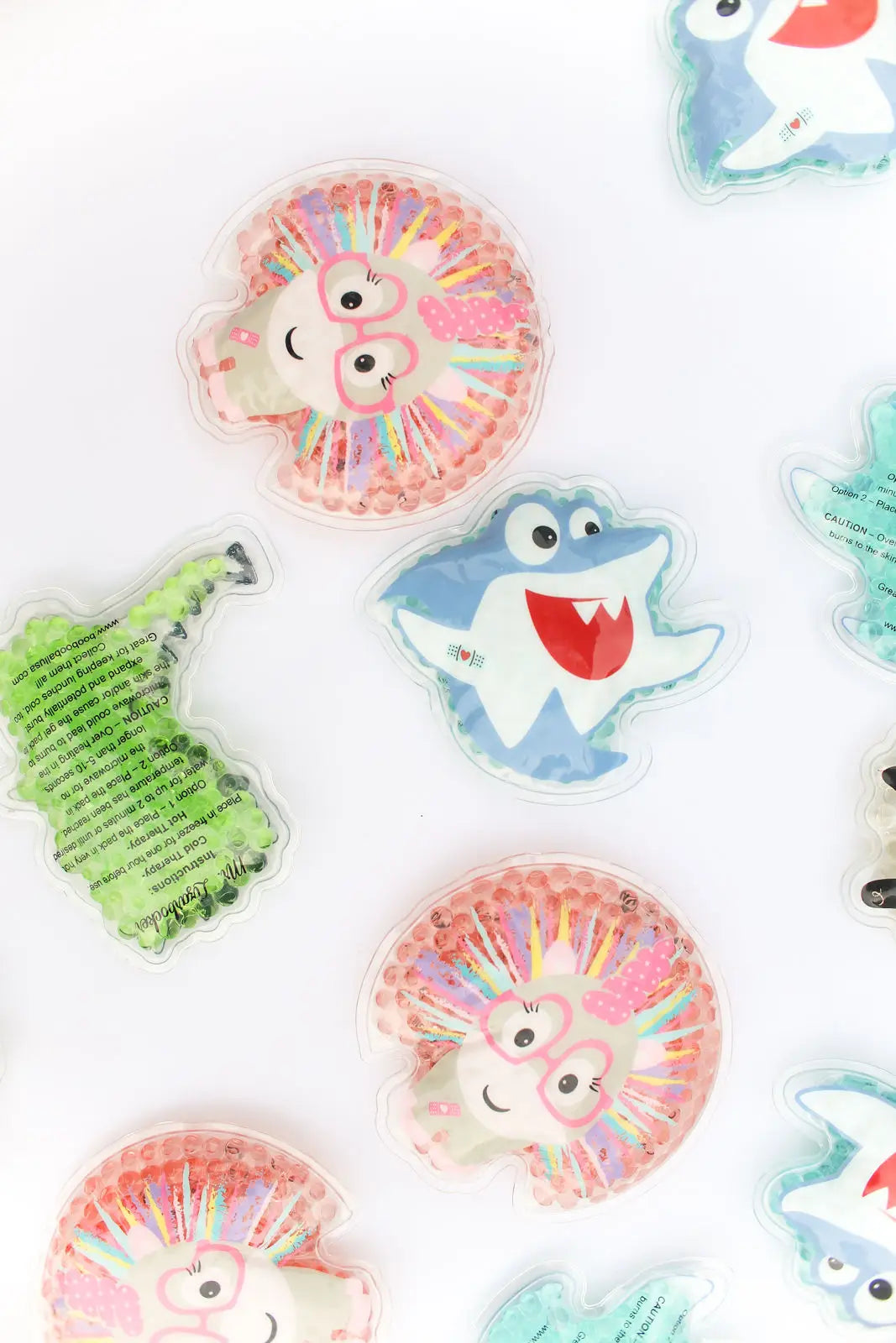Super soft reusable gel bead pack. Hot + cold Freeze it to soothe bumps & bruises, insect bites, fevers, sunburns, ear aches, sprains & growing pains. Cold: place in freezer for one hour before use. Hot: warm in hot water before use or microwave for 5-10 seconds. Non-toxic gel beads. Bpa free. Latex free. Wipe clean. Directions are printed on the back of each freezer pack. Fun tips: ~slip heated packs into pockets for instant winter warmth. ~perfect for keeping lunches cold. Gel freezer packs are reusable Use hot or cold Filled with fun and flexible non-toxic food grade gel beads Directions for how to use are on the back of each gel pack Ages 3+ Adult supervision is required when using this product. Imported 1 single icepack - bandages, stickers, plush toy not included. See https://www.faire.com/product/p_96glf76t5x?refb=true