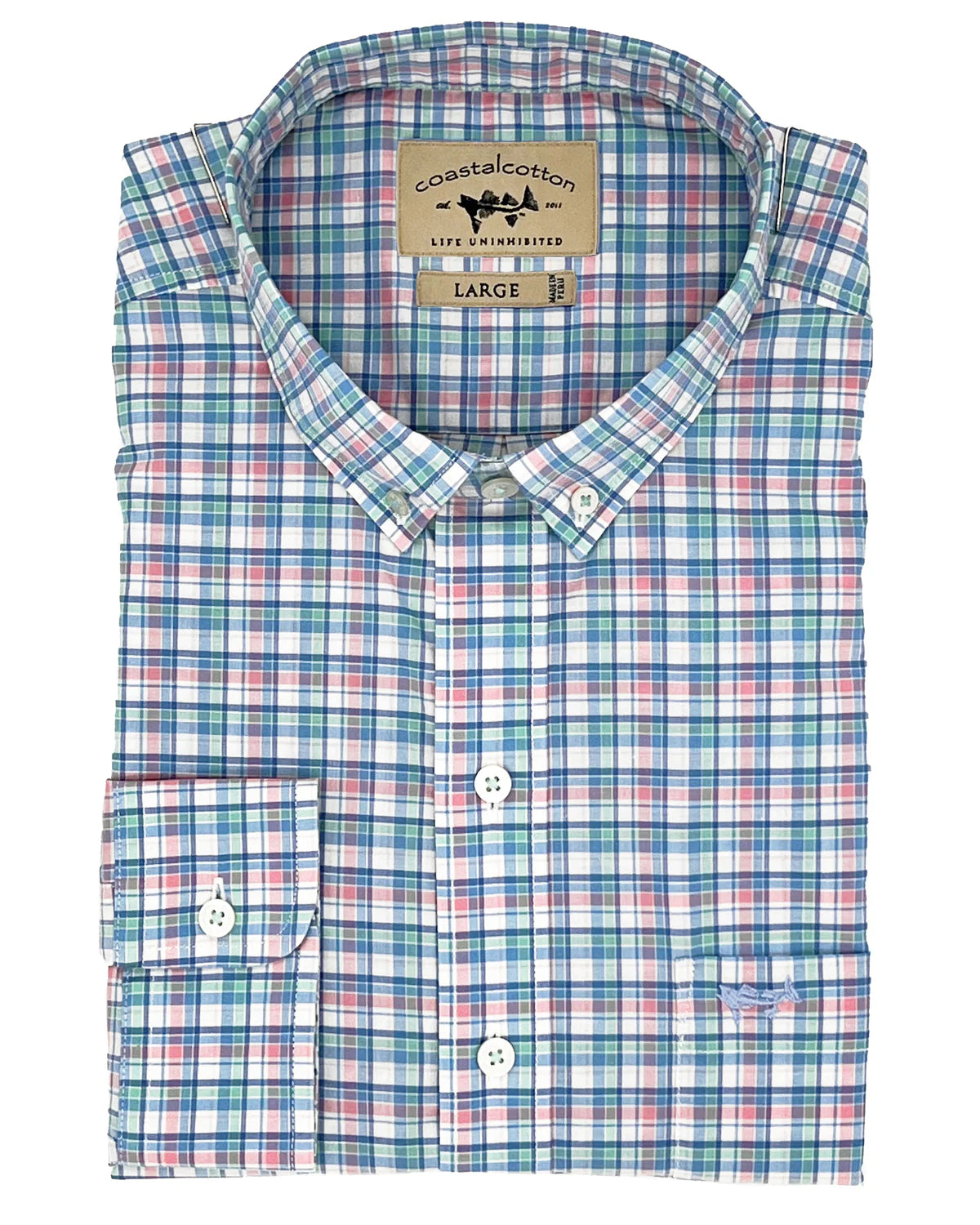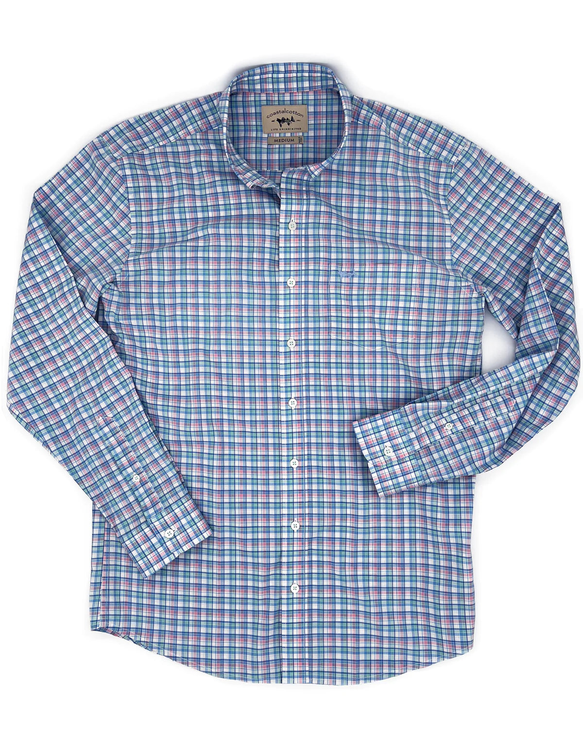 Coastal Cotton Spring Plaid Woven LS Dress Shirt
