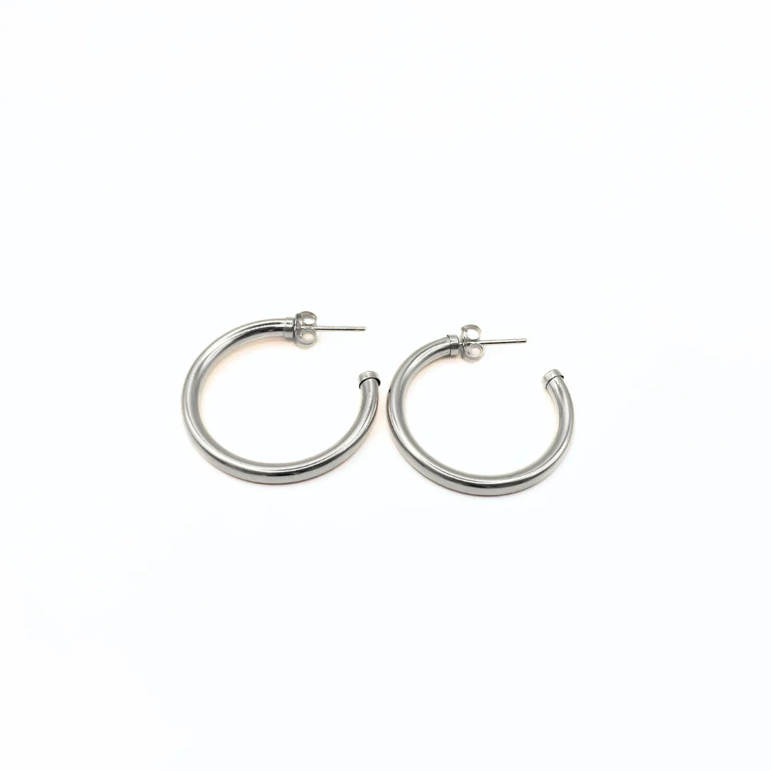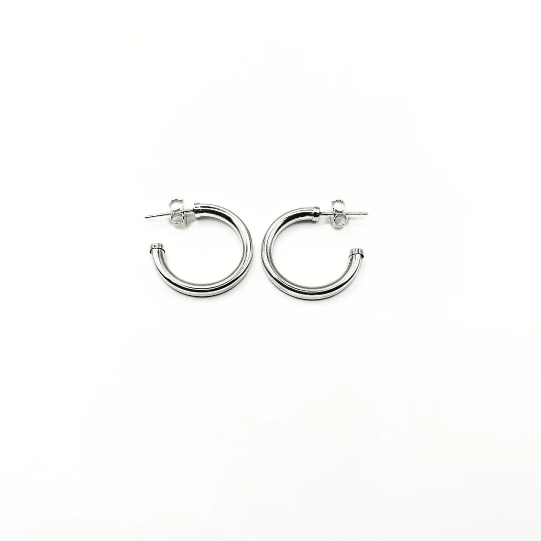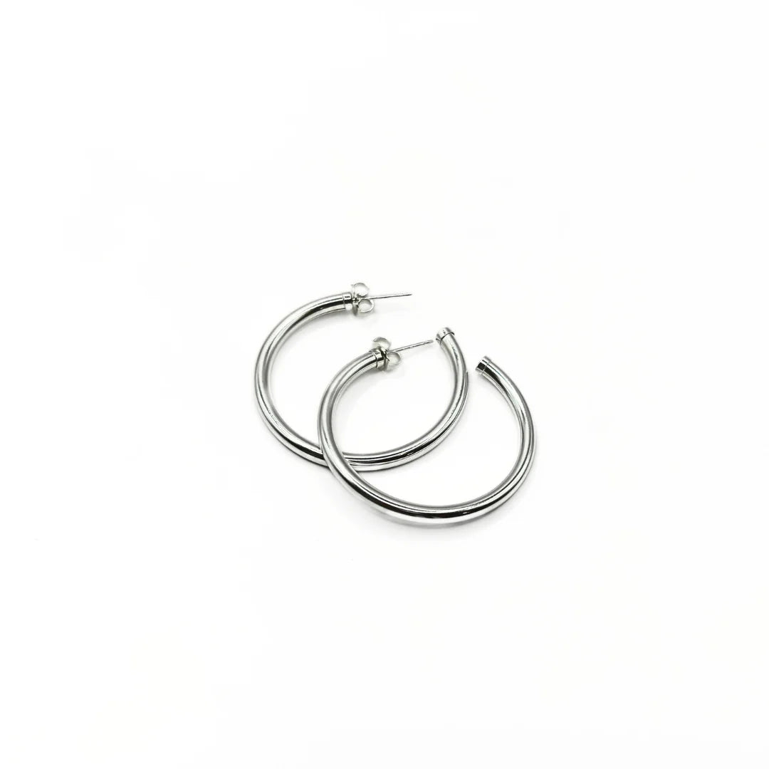 Our sterling silver post hoops are impressively thick yet light as air. 3mm thick. Perfect for daily wear and travel. Paris-worthy.