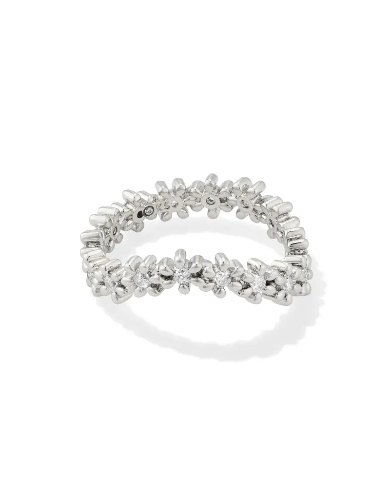 With its dainty daisies and sparkling crystal details, the Nydia Silver Band Ring in White Crystal is too precious to miss. Reminiscent of a daisy chain, this sweet style is minimal enough for everyday wear and glamorous enough for even the most special occasions.