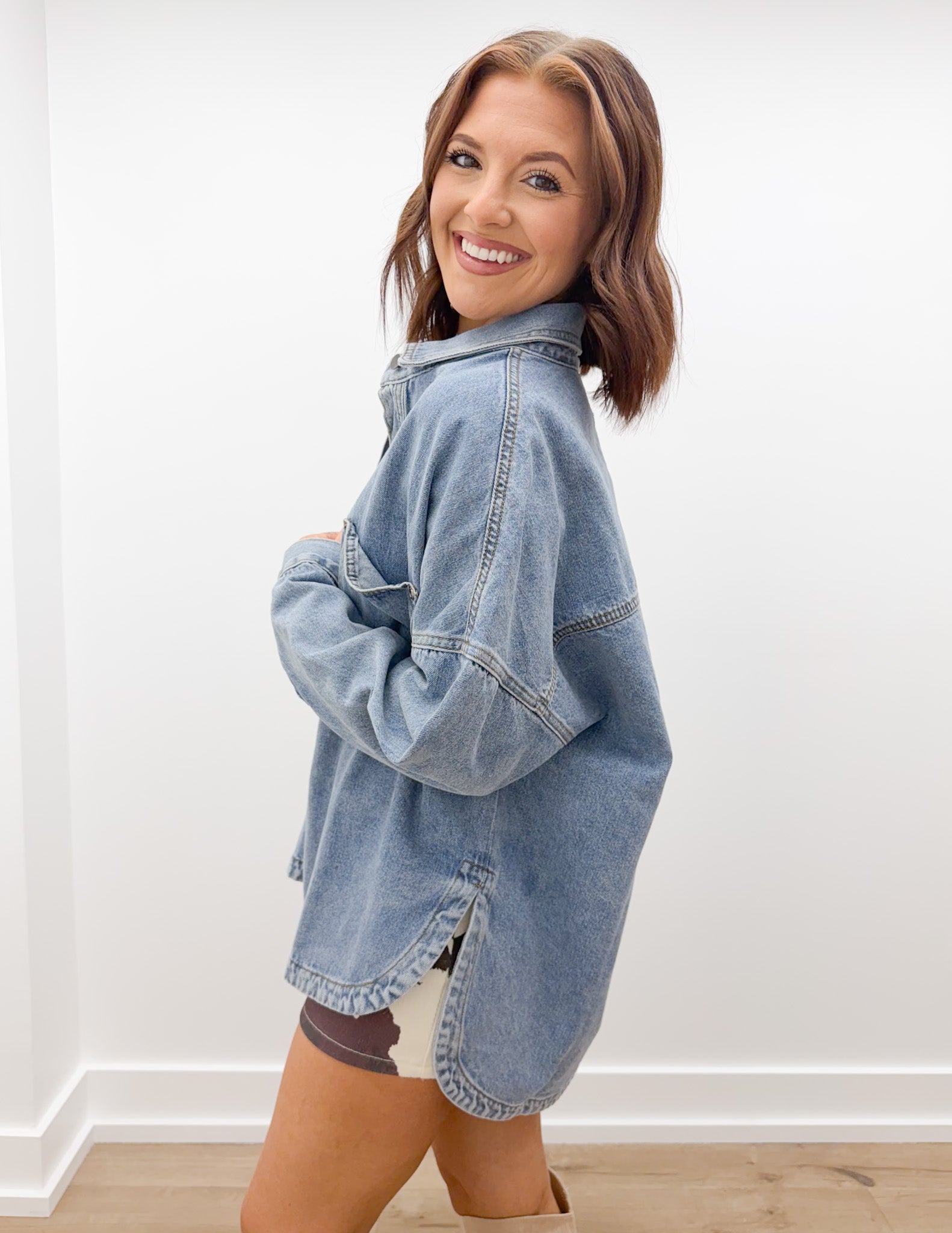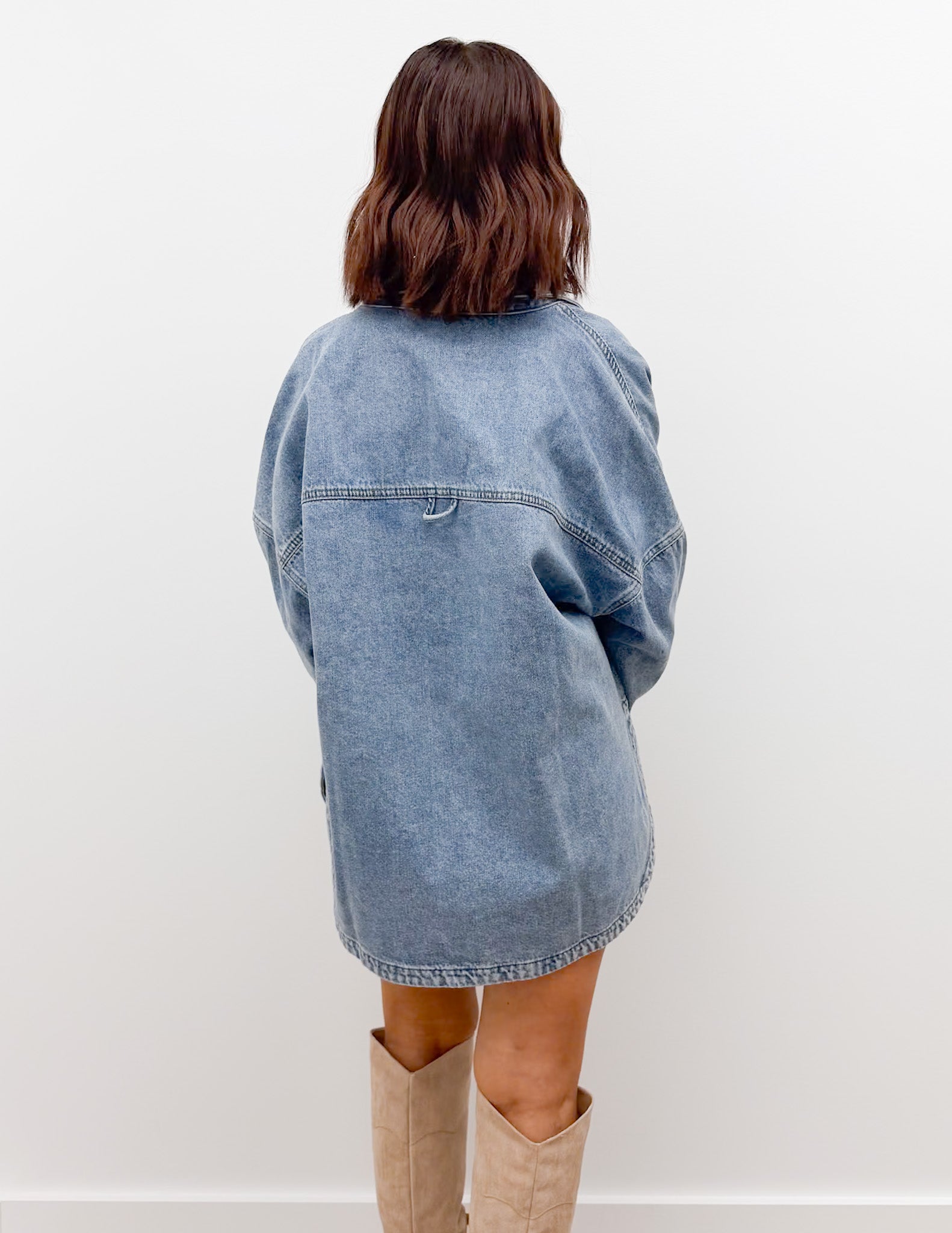 Oh Why Washed Snap Button Denim Shacket