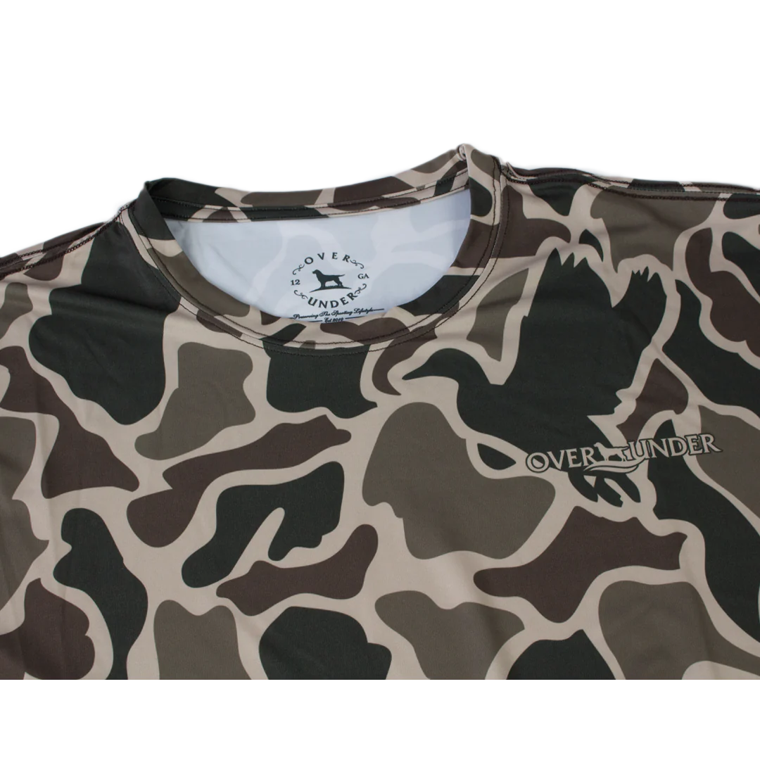 Early season scouting, scorching days on the bluewater, and sometimes regular ol' everyday life call for a shirt that will perform. Using our signature Timber Tech performance wicking technology, this shirt is perfect for the sporting gentlemen. This shirt features our signature Retro Duck Camo print fully sublimated into the entire shirt.