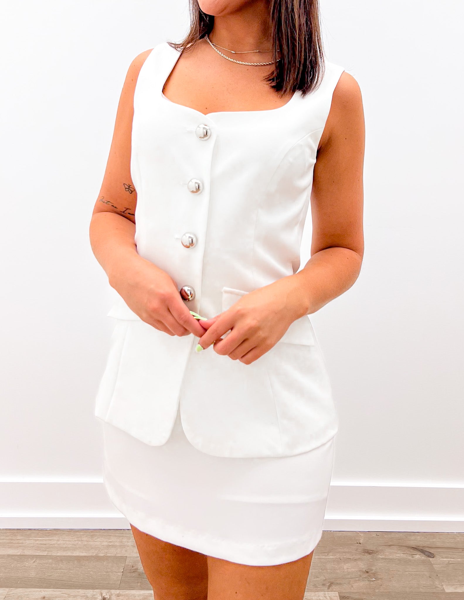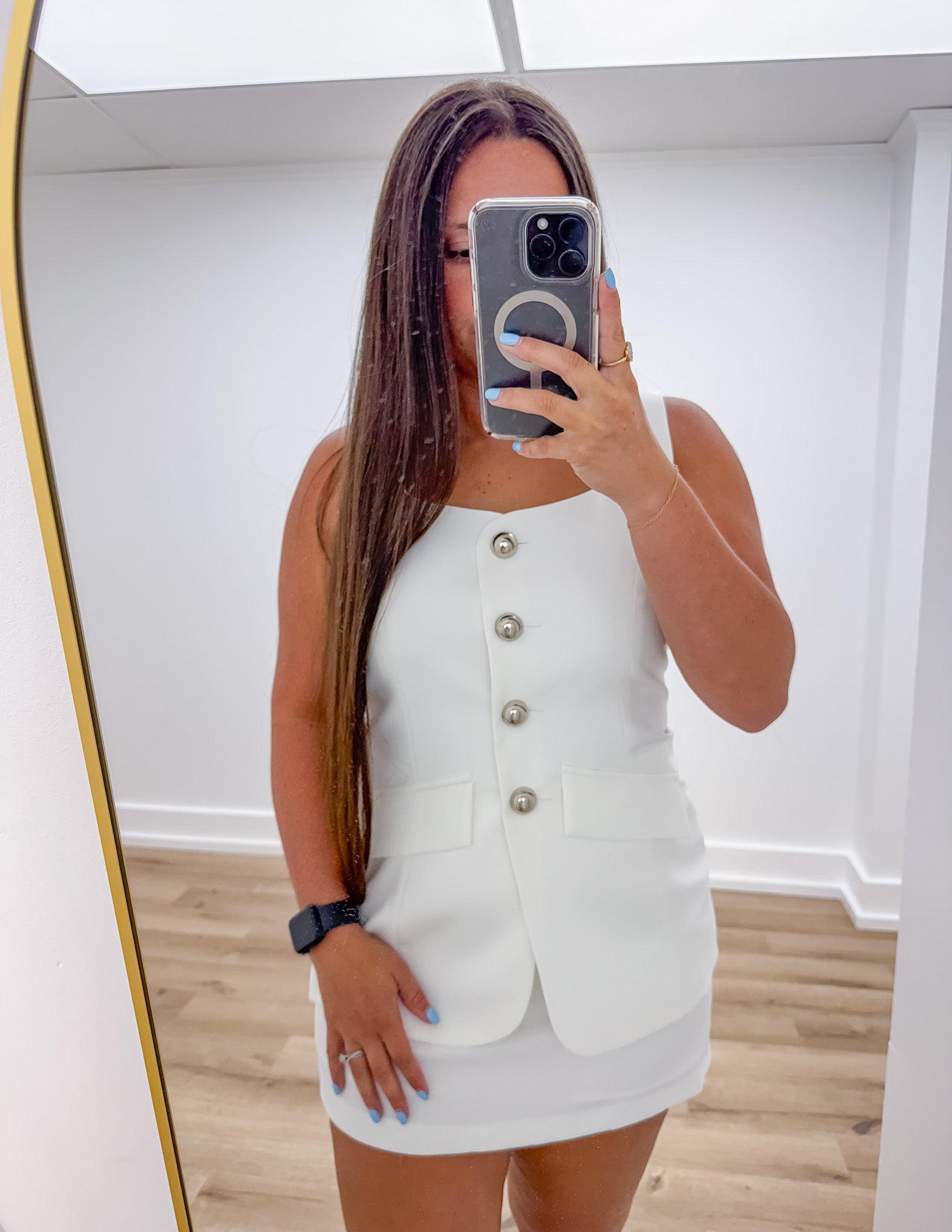 Square Neck Button Down Sleeveless Blazer Romper 90%POLYESTER 10%SPANDEXadult female