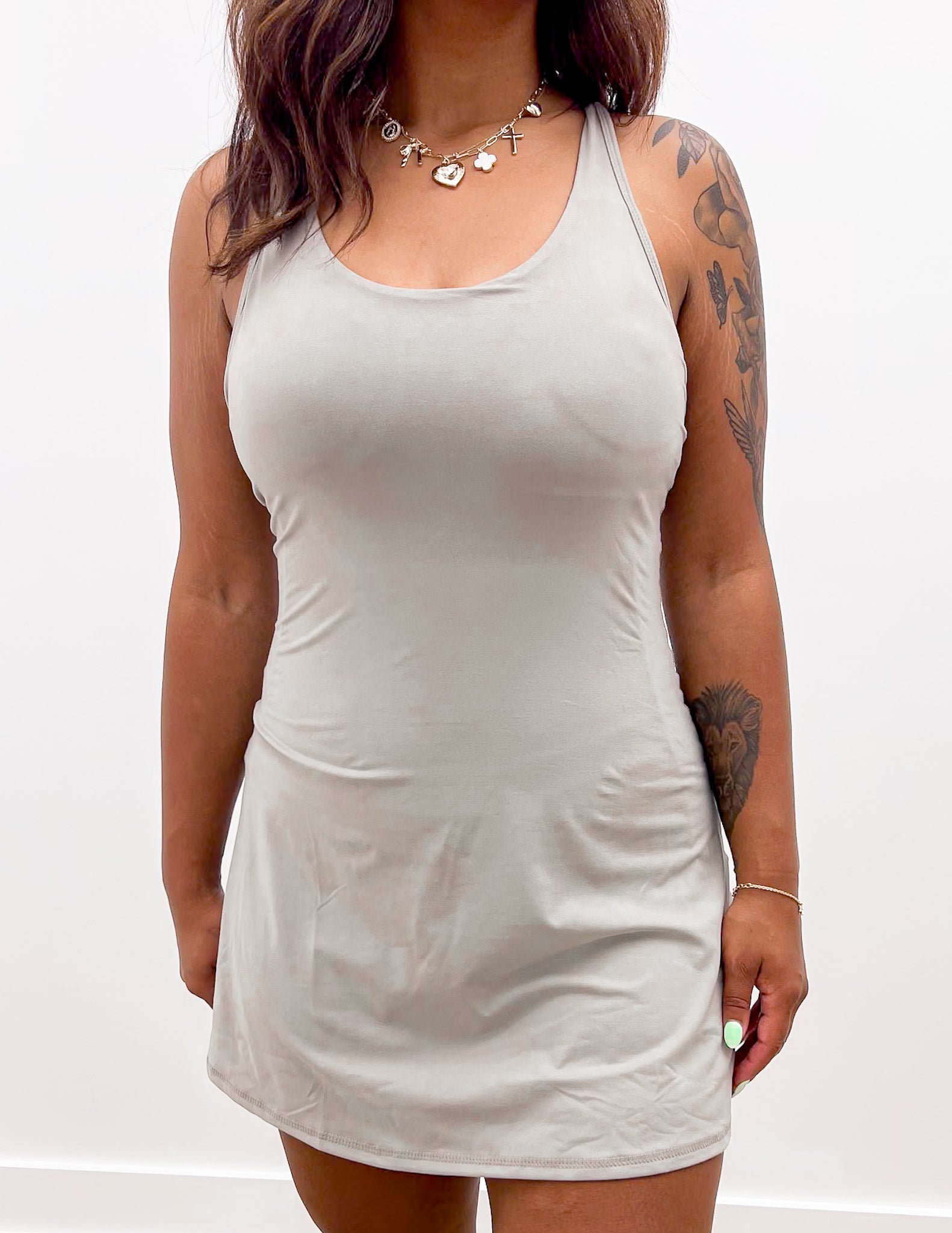 Living The Dream Tennis Romper Dress in Stone Taupe