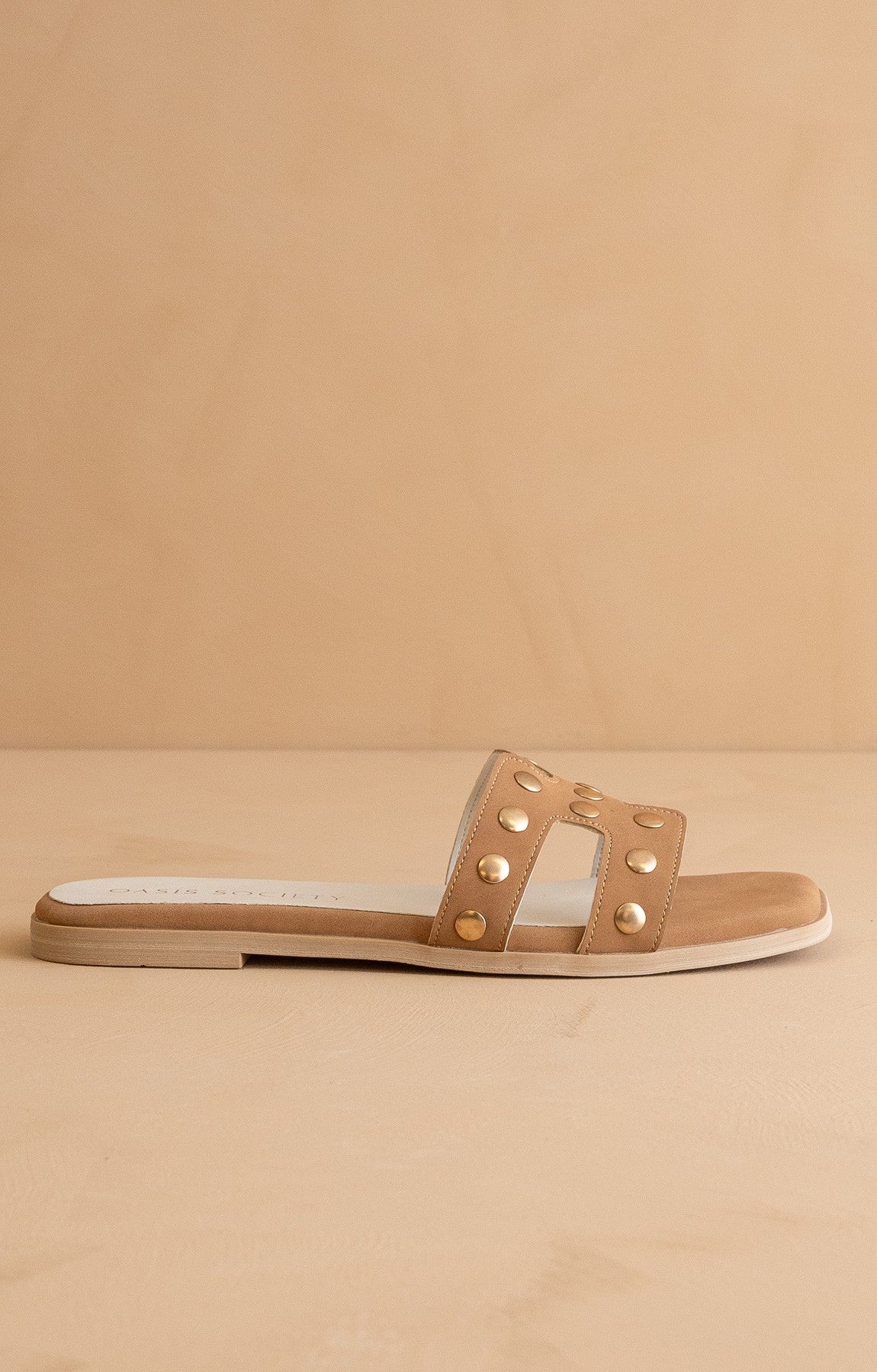 The H-Strap sandal now in leather. Details: Brand: Oasis Society Heel Height: 0.50'' Types of Closures: Slip On