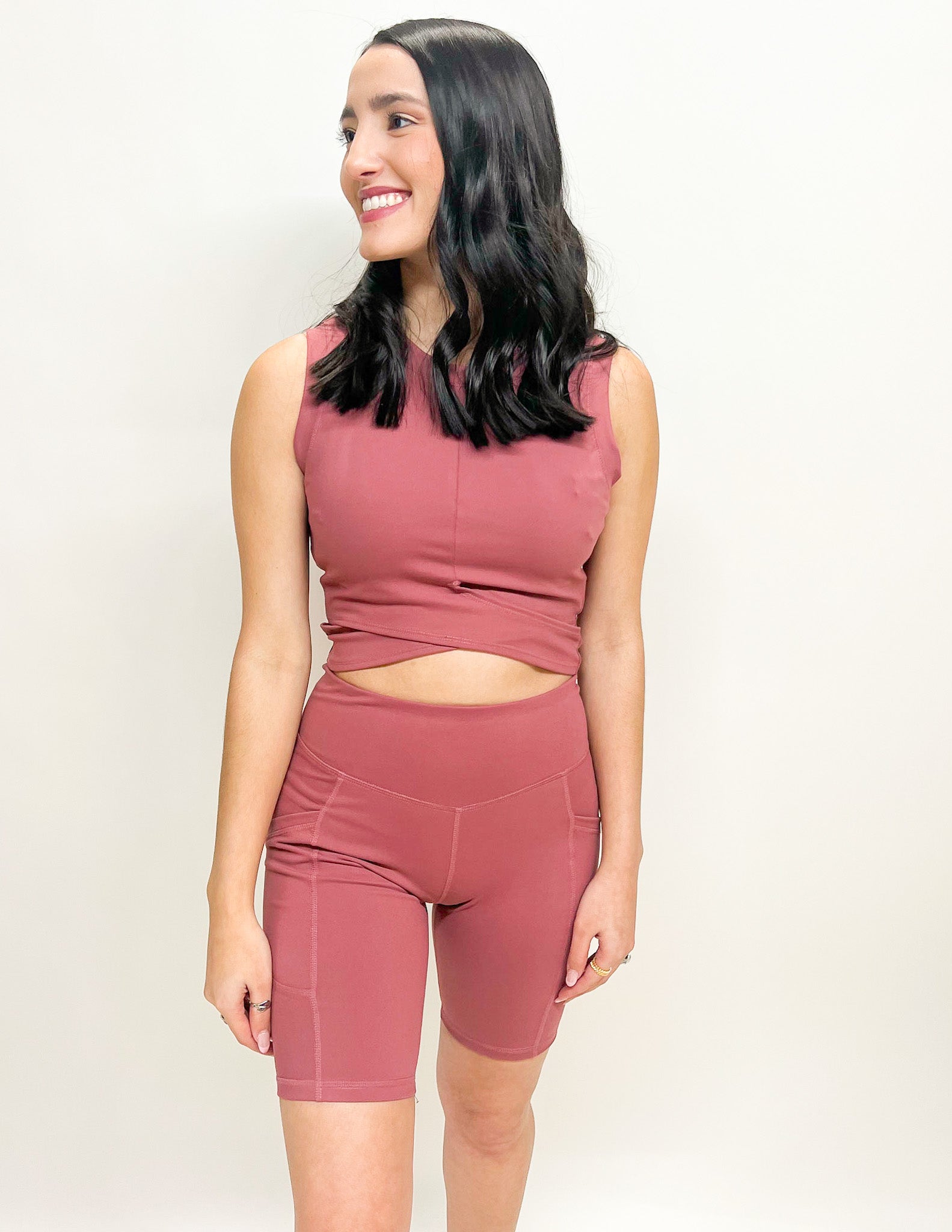 **MATCHING SET SOLD SEPARATELY** Get the full set with shorts LP81193SET - Active wear solid crop top - Cross hem - Sleeveless