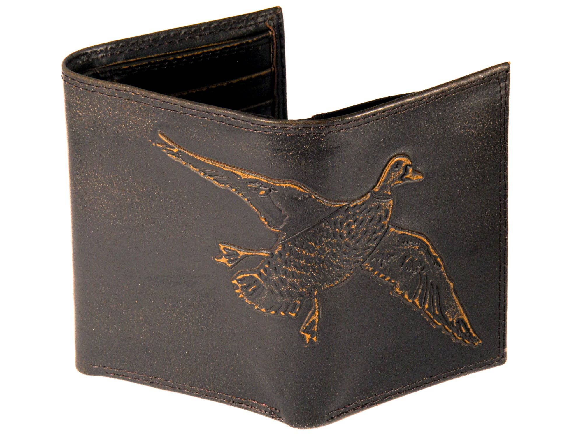Show your passion with an original Zep-Pro leather trifold wallet featuring a Mallard design. The duck imagery on these wallets taps into our intrinsic connection to nature and wildlife. It is a stylish and unique way to show enthusiasm while keeping important cards and cash organized. This Zep-Pro wallet is constructed of full grain leather with a hand burnished finish and features the Mallard design, proudly displayed on the overlapping sides.